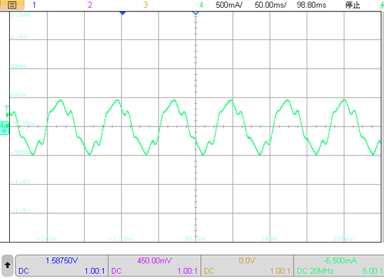 該方案采用載波頻率16KHz,支持速度、電流閉環(huán)控制,弱磁控制模式。非靜止啟動(dòng)功能使吊扇即使在最初因外力而反向轉(zhuǎn)動(dòng)時(shí)也能正常旋轉(zhuǎn)。方案還集成了多種保護(hù),如硬件和軟件過(guò)流保護(hù)、過(guò)壓和欠壓保護(hù),以及缺相和堵轉(zhuǎn)檢測(cè)。發(fā)生故障后,一旦故障被清除,系統(tǒng)將嘗試重新啟動(dòng)并恢復(fù)到上一個(gè)速度狀態(tài)。算法響應(yīng)速度快,參數(shù)配置簡(jiǎn)單,可直接閉環(huán)啟動(dòng)。圖2為該方案的連接圖。圖3為正常運(yùn)行的相電流波形圖。圖4為逆風(fēng)啟動(dòng)的相電流波形。