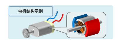 現(xiàn)在,相信您已經(jīng)明白了機(jī)械能是通過(guò)磁體的相吸與相斥的力而獲得的,那么,持續(xù)的旋轉(zhuǎn)運(yùn)動(dòng)是如何實(shí)現(xiàn)的呢?關(guān)于這一點(diǎn),只要看看無(wú)線(xiàn)遙控汽車(chē)和電子制作等作品中使用的電機(jī)的結(jié)構(gòu),其實(shí)很容易理解。