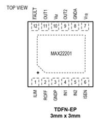 該器件采用小型TDFN12 3mm x 3mm封裝。MAX22201/2/7具有小尺寸封裝、高效率并集成準(zhǔn)確的電流檢測功能,因此非常適合空間和功耗敏感型應(yīng)用,比如有刷直流電機(jī)驅(qū)動(dòng)、鎖閉閥和電磁閥以及單相步進(jìn)電機(jī)驅(qū)動(dòng)。
