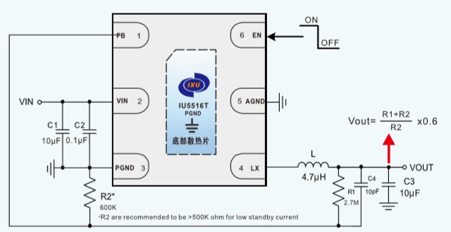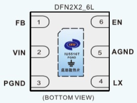 IU5516T采用了纖小的DFN2*2_6L封裝,最低可達到小于3μA漏電,最適合在移動設(shè)備的電源內(nèi)部使用。