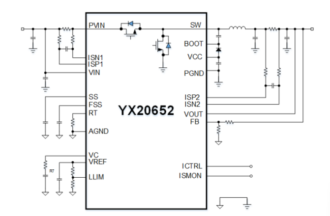 YX20652 是一款全集成MOS的高效同步降壓轉(zhuǎn)換器,其輸入電壓范圍可達(dá)4V至60V,最大輸出電流可達(dá)12A,最高效率可達(dá)97%。得益于MOS管全集成化設(shè)計(jì),YX20652大幅簡(jiǎn)化了轉(zhuǎn)換器的外圍電路,使得整板體積更小,功率密度更高,系統(tǒng)成本進(jìn)一步降低。此外,該產(chǎn)品還具備并聯(lián)錯(cuò)相功能,方便功率擴(kuò)展的同時(shí),有效降低了輸出紋波,提升了系統(tǒng)的穩(wěn)定性和可靠性。