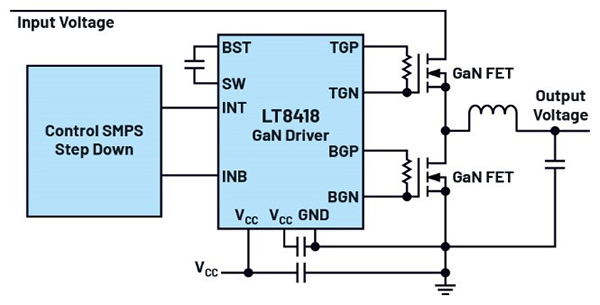 圖2.LT8418,一款用于GaN開關(guān)的100 V半橋驅(qū)動器。