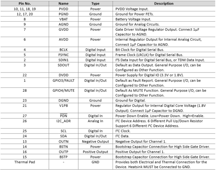 - 供電電壓范圍 PVDD: 4.5V to 34V
