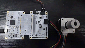 TMCL-IDE 是 TMC5240 配套的圖形化配置工具,結(jié)合 TMC5240-EVAL 評(píng)估板,開(kāi)發(fā)者可以快速完成電機(jī)參數(shù)的初始化配置,使電機(jī)能夠快速進(jìn)入預(yù)期性能狀態(tài)。下圖 (圖3) 為 TMC5240-EVAL 評(píng)估板與電機(jī)連接動(dòng)態(tài)效果。由于本章主要介紹 TMCL-IDE 到 MCU 的代碼移植,因此具體的配置步驟此處不再一一列出,如有需要可通過(guò)文末聯(lián)系獲取相關(guān)教程。