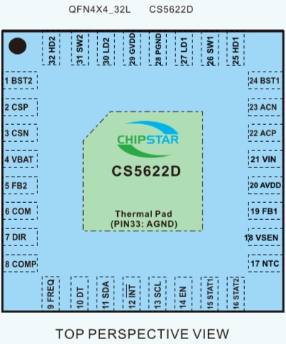 CS5622D是一款寬輸入電壓,支持鋰離子、鋰聚合物、磷酸鐵鋰的雙向開關(guān)模式同步4關(guān)、升降壓充放電控制器。無論輸入電壓是低于,高于或者等于電池組電壓,它都可以對電池組實現(xiàn)充電管理,包括涓流、恒流、恒壓階段和充電狀態(tài)指示。當系統(tǒng)需要從電池組放電時,CS5622D能夠反向輸出所需電壓,可輸出低于、高于或者等于電池組的電壓值。