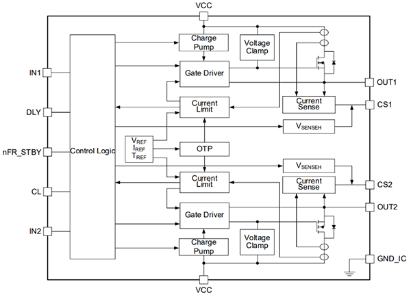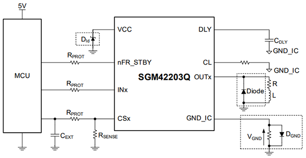 SGM42203Q 采用符合環(huán)保理念的 TSSOP-16A(帶裸露焊盤)綠色封裝,其雙通道架構(gòu)可提供 3.5A(單通道)或每通道 2.5A(雙通道)的持續(xù)負(fù)載驅(qū)動(dòng)能力。器件還集成了完善的故障檢測機(jī)制,包括開路負(fù)載檢測、短路至地保護(hù)、負(fù)電壓鉗位等,并特別針對汽車電子環(huán)境設(shè)計(jì)了系統(tǒng)級保護(hù)功能,如電源異常處理(欠壓關(guān)斷/過壓鉗位)、接地丟失保護(hù)以及電池?cái)嚯姳Wo(hù)。兼容 3V/5V 邏輯電平輸入的特性使其能靈活適配各類汽車電子控制系統(tǒng),是滿足嚴(yán)苛汽車應(yīng)用要求的理想解決方案。