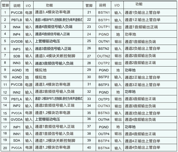 管腳排列以及定義