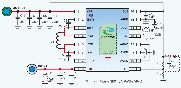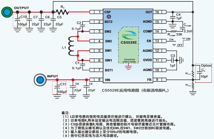 CS5529E的輸入電壓為2.8V-18V,提供可調輸出電壓為1V-18V .CS5529E可以通過調整兩個外加電阻來設定輸出電壓.CS5529E同樣也適用于1-4節(jié)鋰電池的應用場景,可以有效的延長電池的使用時間。