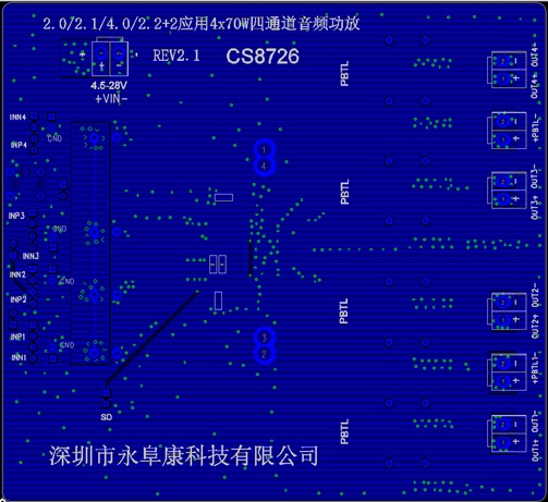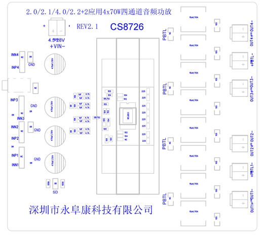 因此,為盡可能減少高性能多通道音頻系統(tǒng)的功耗和簡(jiǎn)化相關(guān)的溫度管理,電子工程師一直希望借助高效率的多聲道D類(lèi)功放芯片,來(lái)簡(jiǎn)化應(yīng)用線路,節(jié)省PCB面積。深圳市永阜康科技有限公司一直專注于音頻領(lǐng)域的耕耘,現(xiàn)在大力推廣一款4X70W四通道D類(lèi)音頻功放IC-CS8726E,工作電壓4.5V-28V,兼顧2.0/2.1/4.0多聲道音頻應(yīng)用,這款器件在頂層設(shè)計(jì)了散熱焊盤(pán),焊盤(pán)上連接散熱器后在供電電壓24V的情況下,最大可以輸出4x70W的連續(xù)功率.提供了特殊的EFB40封裝形式供客戶選擇,合適的封裝尺寸為客戶安裝散熱器件提供了最大的方便,其額定的工作溫度范圍為-40℃至85℃。