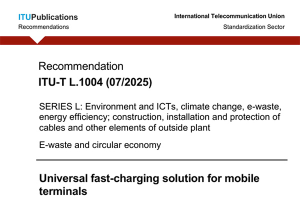 據(jù)中國信通院消息,由中國信息通信研究院(簡稱“中國信通院”)牽頭,聯(lián)合華為、OPPO、vivo共同制定的《移動終端通用快速充電解決方案》(標(biāo)準(zhǔn)號:ITU-T L.1004)已通過國際電信聯(lián)盟(ITU)的審議,并作為國際標(biāo)準(zhǔn)正式發(fā)布。這是國際電信聯(lián)盟史上首個為移動終端制定的全球性通用快速充電標(biāo)準(zhǔn)。
