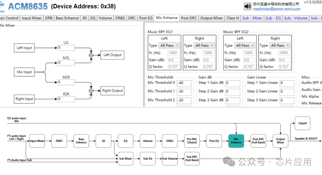ACM8635是三路BTL輸出架構(gòu),可以輸出30W+2*15W功率,集成升級(jí)后的DSP算法,集成麥克風(fēng)輔助處理人聲分離功能,集成動(dòng)態(tài)升壓功能。