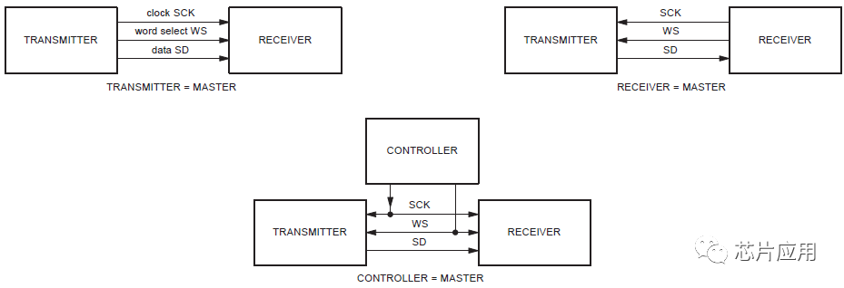 I2S是比較簡(jiǎn)單的數(shù)字接口協(xié)議,沒有地址或設(shè)備選擇機(jī)制。在I2S總線上,只能同時(shí)存在一個(gè)主設(shè)備和發(fā)送設(shè)備。主設(shè)備可以是發(fā)送設(shè)備,也可以是接收設(shè)備,或是協(xié)調(diào)發(fā)送設(shè)備和接收設(shè)備的其它控制設(shè)備。在I2S系統(tǒng)中,提供時(shí)鐘(SCKWS)的設(shè)備為主設(shè)備。圖3是常見的I2S系統(tǒng)框圖。