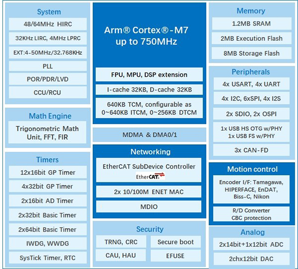 業(yè)界領(lǐng)先的半導(dǎo)體器件供應(yīng)商兆易創(chuàng)新GigaDevice(股票代碼 603986.SH、3986.HK)今日宣布,正式推出新一代GD32H7系列超高性能MCU,包含GD32H789/779系列超高性能通用MCU,以及集成EtherCAT®從站控制器GD32H78E/77E超高實(shí)時(shí)性系列MCU,該系列產(chǎn)品基于Arm® Cortex®-M7內(nèi)核,主頻高達(dá)750MHz,配備高速大容量內(nèi)存架構(gòu)及640KB可與CPU同頻運(yùn)行緊耦合內(nèi)存(TCM),實(shí)現(xiàn)了高性能、低動(dòng)態(tài)功耗與高速通信的有機(jī)統(tǒng)一。該系列微控制器可適用伺服控制、變頻驅(qū)動(dòng)、數(shù)字電源、便攜電子產(chǎn)品,智能家居以及消防等領(lǐng)域,樹立性能新標(biāo)桿,為下一代智能裝備的升級奠定核心硬件基礎(chǔ)。