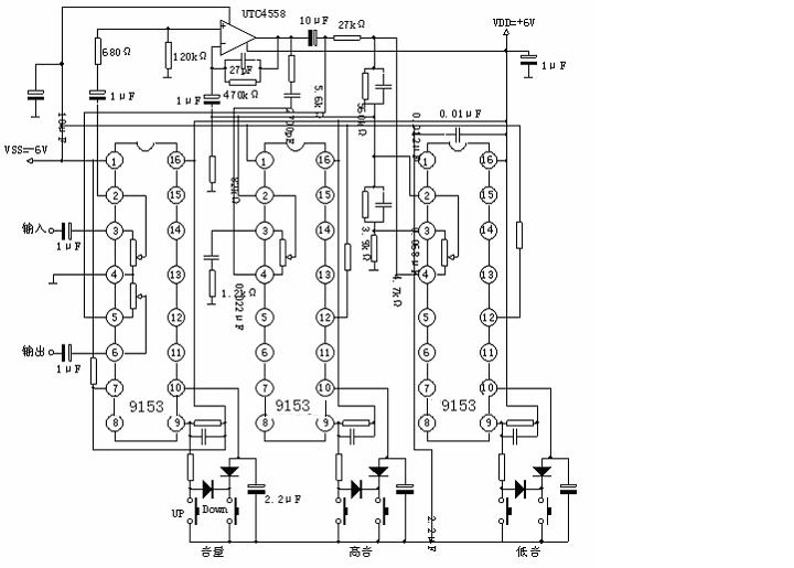 TC9153是為音頻設備等音量控制電子化而設計的一塊專用集成電路。該電路采用CMOS 工藝制作,