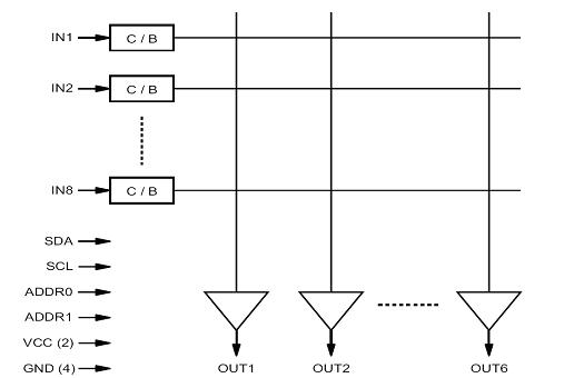8輸入、6輸出視頻矩陣開關(guān) |