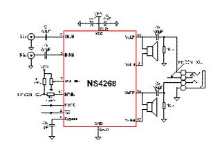 產(chǎn)品名稱: NS4268(集成32級(jí)DC音量控制、超低EMI、無需濾波器、立體聲耳機(jī)功能、3W雙聲道D類音頻功放IC)