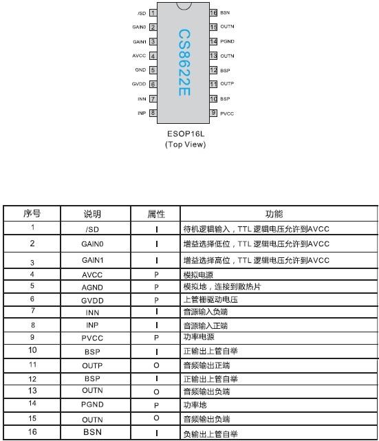 擴頻功能、低空載電流、40倍增益、免濾波、2X23W/33W(PBTL) D類音頻放大器 |