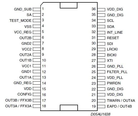 當前位置:首頁->產(chǎn)品展示->功放IC->STA339BW/STA339(2X9W+20W或20W雙聲道數(shù)字I2S音頻信號輸入功放IC)