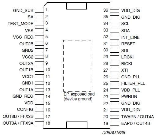 HT560 2X40W/18V/4Ω或75W/24V/4Ω QFN-36 4.5V-26V 30W立體聲D類I2S輸入音頻功放