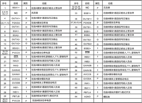 產(chǎn)品功能: PO at 10% 25W(4Ω)+2X15W(8Ω)/15V或4X15W(8Ω)/15V或2X25W(4Ω)/14V