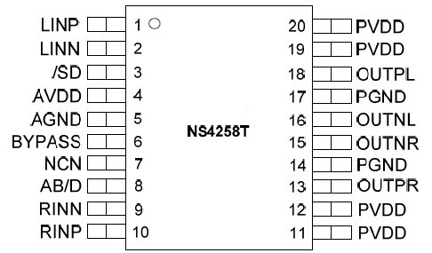 具有防破音功能的免電感濾波2×20W D類立體聲音頻功放 |
