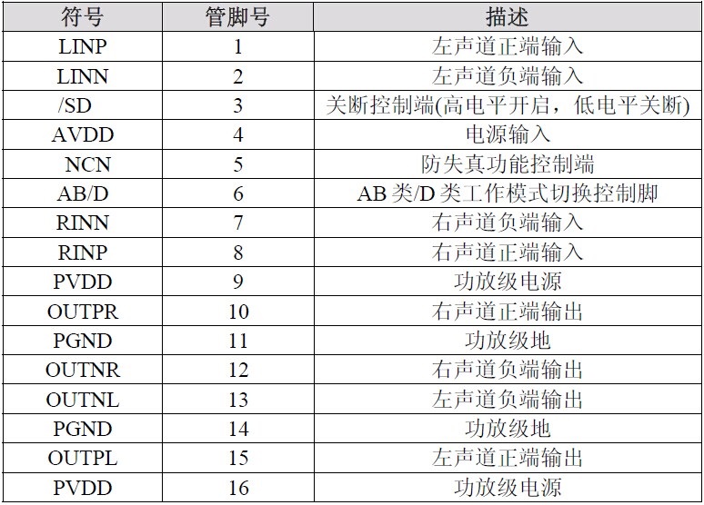 擴(kuò)頻模式,靜音功能,三種防破音模式,AB/D切換,內(nèi)置升壓,18W單聲道音頻功放 |