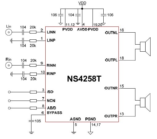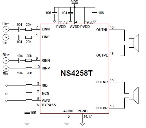 固定20倍增益,4種防破音可選,AB/D切換功能,2X4.8W輸出功率,立體聲音頻功率放大器 |