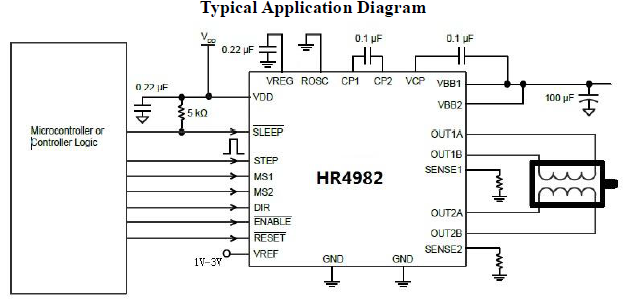 HR4988是一種便于使用的內(nèi)部集成了譯碼器的微特步進(jìn)電機(jī)驅(qū)動(dòng)器。其設(shè)計(jì)為能使雙極步進(jìn)電機(jī)以全、半、1/4、1/8、1/16、1/32、1/64和1/128步進(jìn)模式工作。步進(jìn)模式由邏輯輸入MSx選擇。輸出驅(qū)動(dòng)能力達(dá)到35V和±2A。HR4988包含一個(gè)工作在慢衰或混合衰減模式的固