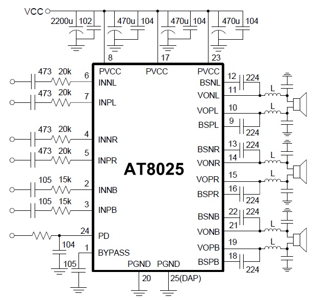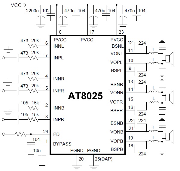 單芯片2.1音箱專(zhuān)用D類(lèi)功放IC |