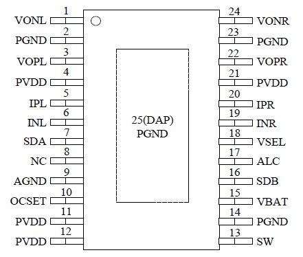 恒定4.8W/2.5V-5.5V(內(nèi)置自適應(yīng)Charge Pump模塊)/4Ω |