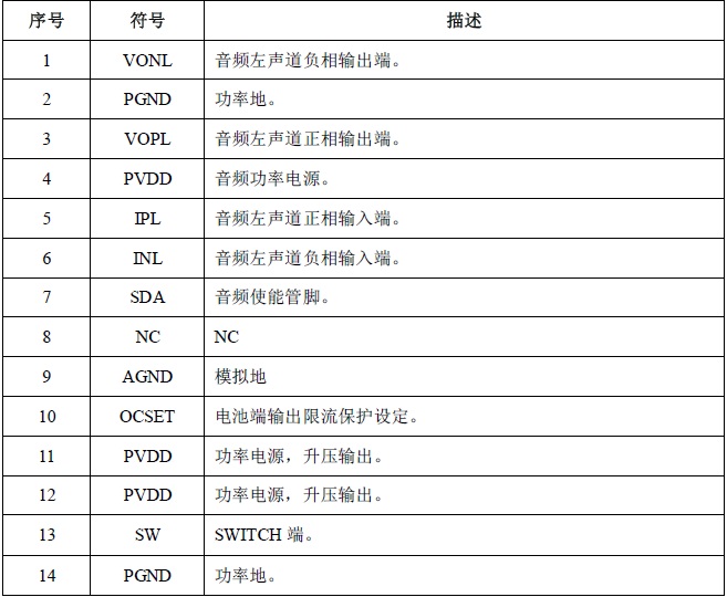 7.0W/2.8V-5.5V(內(nèi)置升壓模塊)/4Ω |