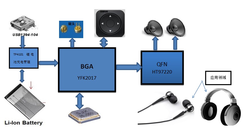 其中,YFK2017是一顆全集成自適應(yīng)主動(dòng)降噪雙模藍(lán)牙耳機(jī)芯片,具有全集成、高性能、低功耗等特點(diǎn),并可以同時(shí)支持BT4.2BLE4.2,支持HIFI音質(zhì)(192Khz/24bit),SNR大于100dB,支持EQ以及各種音效技術(shù)(如超重低音,3D環(huán)繞等),支持多種噪音消除技術(shù),尤其是高性能的自適應(yīng)主動(dòng)降噪技術(shù),可以讓高端主動(dòng)降噪耳機(jī)省去昂貴的獨(dú)立主動(dòng)降噪芯片。