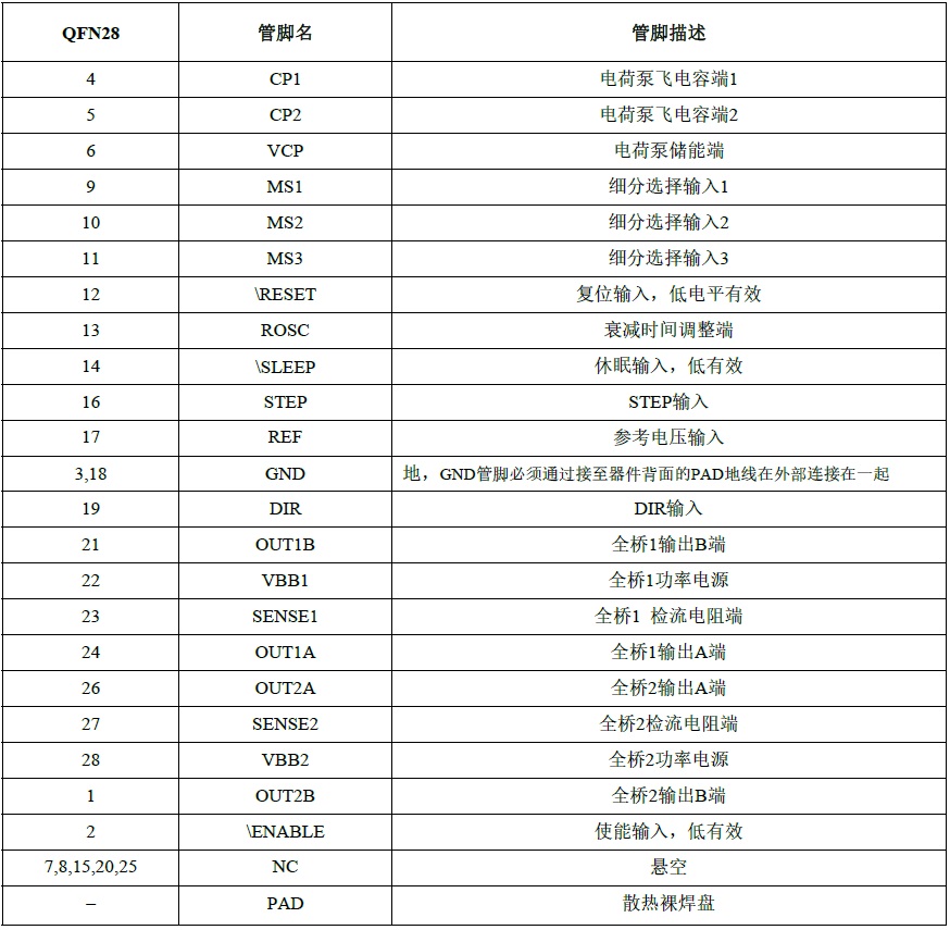 HTD5832 HTD5832E是一款內(nèi)置有譯碼器的低噪聲步進電機 驅(qū)動器。其輸出驅(qū)動能力達到28V±2.5A,最高支持256 細分,同時可實現(xiàn)低噪聲工作。 QFN-28 4.75V-28V 內(nèi)置譯碼器的2.5A低噪聲步進電機驅(qū)動芯片 A4988