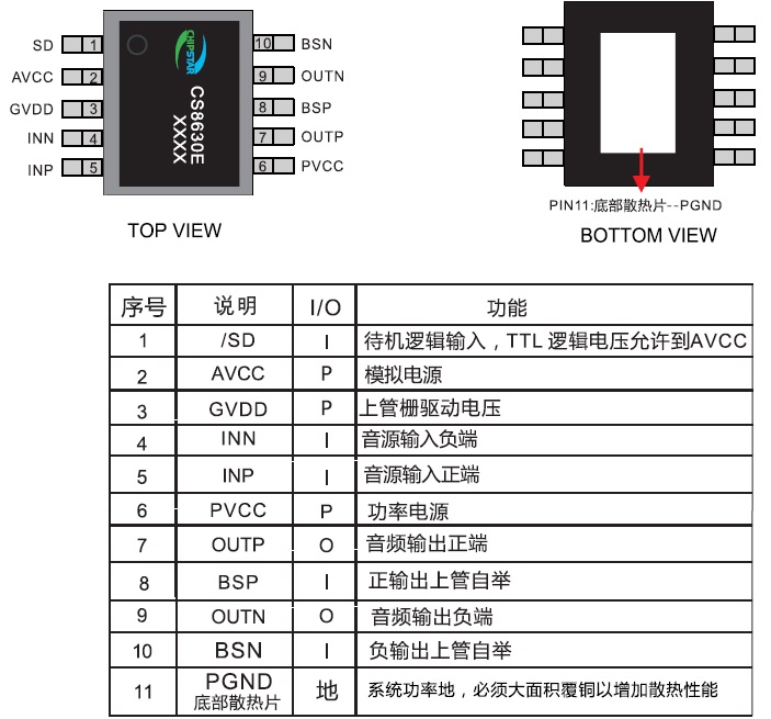 CS8630(ESOP-10封裝、32W單聲道D類音頻功放IC) |