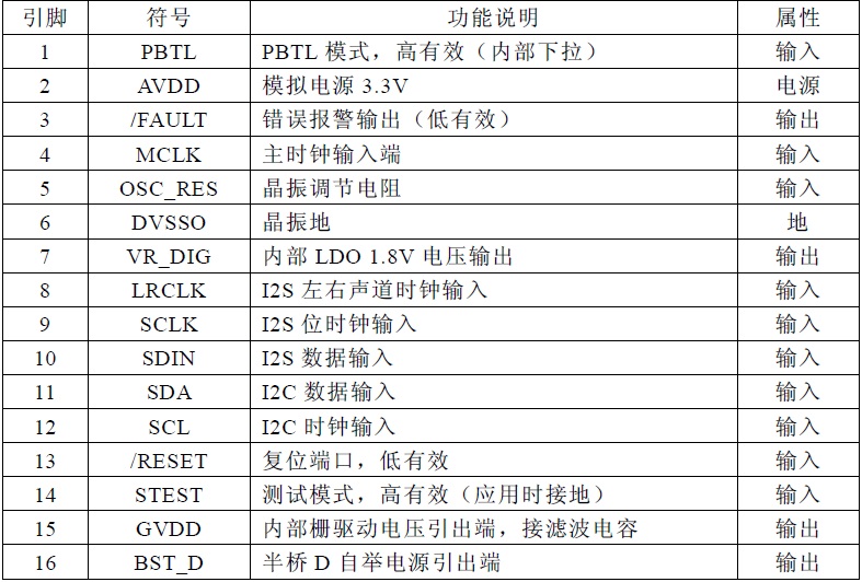 I2S數(shù)字輸入33W立體聲D類音頻功放芯片、內(nèi)置DSP小音量低頻增強等算法 |