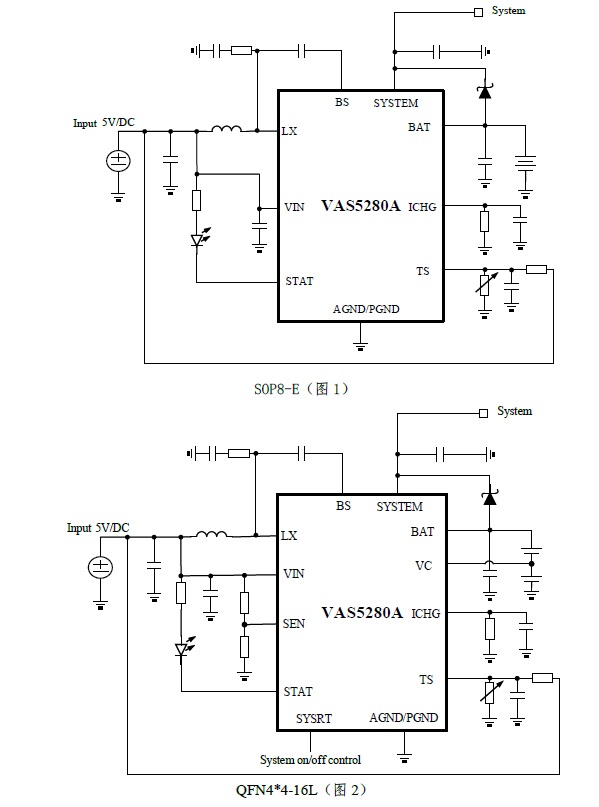 VAS5280A是5V 輸入,帶路徑管理的升壓模式充電管理 IC,無需電池或使用深度放電的電池即可瞬時(shí)啟動(dòng),適用于雙節(jié)串聯(lián)鋰/聚合物電池。能自適應(yīng)任意 5V 電源進(jìn)行充電,并且有輸入過壓、欠