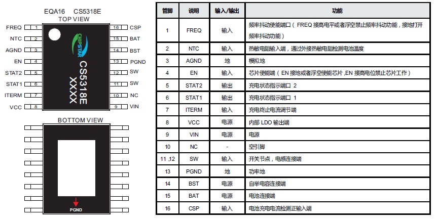 CS5363E是一款20V耐壓,1~4節(jié)鋰電池或1~5節(jié)磷酸鐵鋰電池異步降壓型充電管理IC。 集成功率MOS, 具有最大4A的充電電流能力,充電電流可以通過(guò)外部電阻靈活可調(diào)。恒壓充電電壓由外部電阻分壓網(wǎng)絡(luò)設(shè)置,實(shí)現(xiàn)對(duì)多類型多節(jié)電池的充電管理。 |