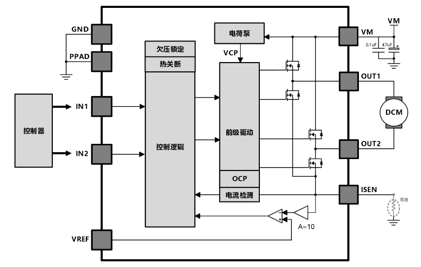 低電壓?jiǎn)瓮ǖ繦橋電機(jī)驅(qū)動(dòng)芯片 |