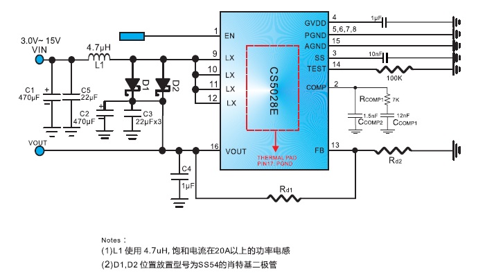 CS5028 輸入電壓:3-15V;輸出電壓最高可提供16V恒定的電壓輸出;最大可保證15A的輸入電流; ESOP-16 3V-15V 內(nèi)置MOS,15A 高效率升壓DC-DC轉(zhuǎn)換器