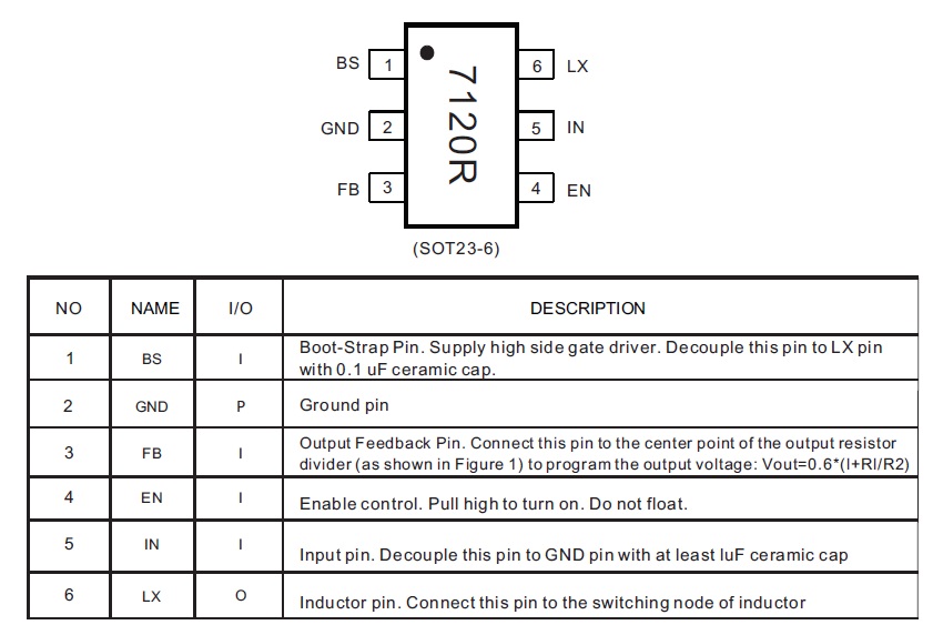 產(chǎn)品名稱: CS7120(22V輸入2A同步降壓IC、SOT23-6小封裝)