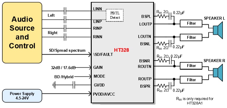 當(dāng)前位置:首頁->產(chǎn)品展示->功放IC->HT328(30W立體聲/60W單聲道D類功放IC)