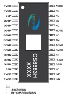 CS8683 130W/30V/4Ω EQB-32(散熱片在頂部,支持外接散熱器) 4.7V-45V 130W單聲道D類功放IC,具有AM干擾抑制功能