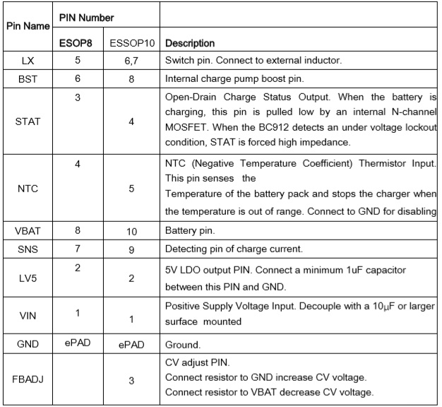 BC913是一款4V-18V寬電壓輸入,支持3節(jié)鋰電池或磷酸鐵鋰電池的降壓充電管理IC。集成功率MOS,采用同步開關(guān)架構(gòu),使其在應(yīng)用時(shí)僅需極少的外圍器件, 可有效減少整體方案尺寸,降低BOM成本。BC912具有3A的充電電流能力,充電電流可以通過外部電阻靈活可調(diào), 充電效率可以達(dá)到95%以上;恒壓充電電壓可調(diào)(電壓點(diǎn)10.5V-13.6V可調(diào),僅限于DFN-10封裝),實(shí)現(xiàn)對(duì)多類型如三節(jié)鋰電池(12.6V/13.05V/13.2V)、三節(jié)磷酸鐵鋰電池(10.8V)的充電管理。 |