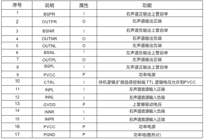產(chǎn)品功能: 2X23W/15V/4Ω或33W/16V/4Ω(PBTL)