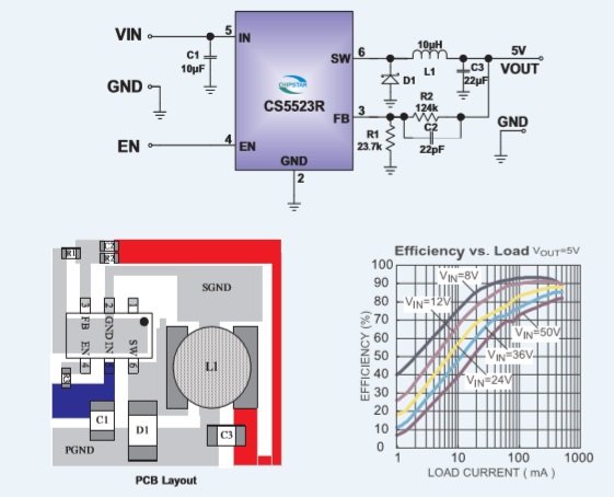 CS5523R是一款內(nèi)置功率MOSFET的單片降壓開(kāi)關(guān)轉(zhuǎn)換器。在4.5V-60V寬輸入范圍內(nèi),其持續(xù)輸出電流可達(dá)到 0.6A,具有極好的負(fù)載和線性調(diào)整率。 |