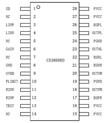 CS3850EO是一款典型輸出功率為40W立體聲的D類音頻功率放大電路 |