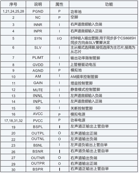 CS8685(2x80W雙聲道大功率D類音頻功放IC) |