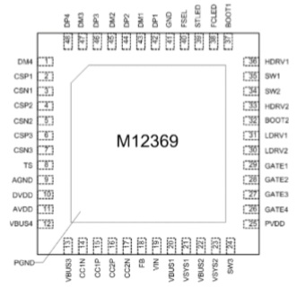 產(chǎn)品名稱: M12369(內(nèi)置快充協(xié)議140W多口3路降壓型充電器SOC方案)