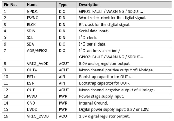 I2S數(shù)字輸入、3.1W單聲道D類(lèi)音頻功率放大器 |