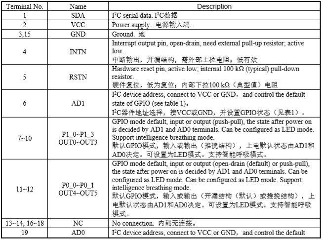 產(chǎn)品名稱(chēng): AW9106/HTR3306(I2C接口、可擴(kuò)展GPIO、6路呼吸燈控制器IC)